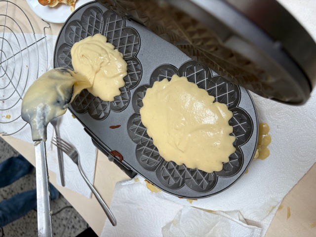 Am letzten Schultag vor den Osterferien wurde es bei uns besonders gemütlich: Unser beliebter Waffeltag stand an! Dank vieler Teigspenden konnten wir reichlich Waffeln backen – und in der ganzen Schule lag der Duft von frischen Waffeln in der Luft. Ein großes Dankeschön gilt den vielen helfenden Eltern, die tatkräftig Waffeln gebacken und Teig gespendet haben . So wurde dieser Tag zu einem schönen gemeinsamen Abschluss vor den Osterferien.