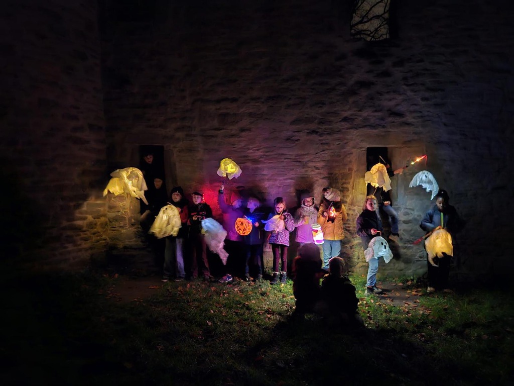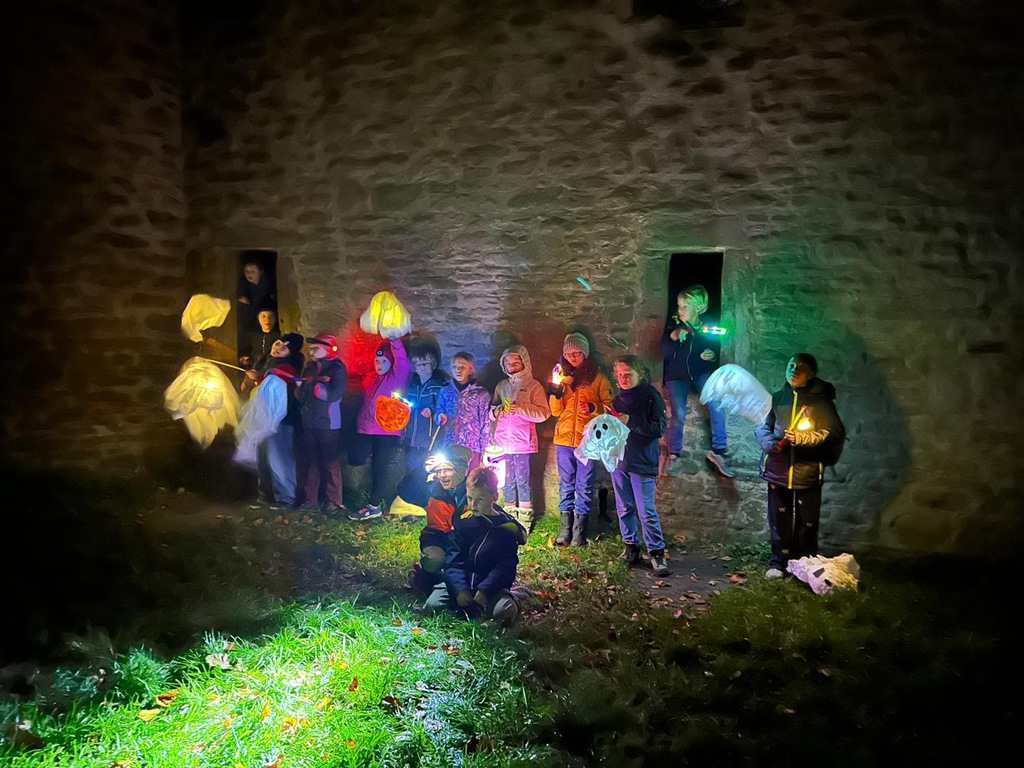 Unsere Nachtwanderung zur Burgruine Hardenstein mit Laternen, musikalischer Begleitung, eigenen Gruselgeschichten und einem Picknick im Dunkeln. Es war sehr schön.