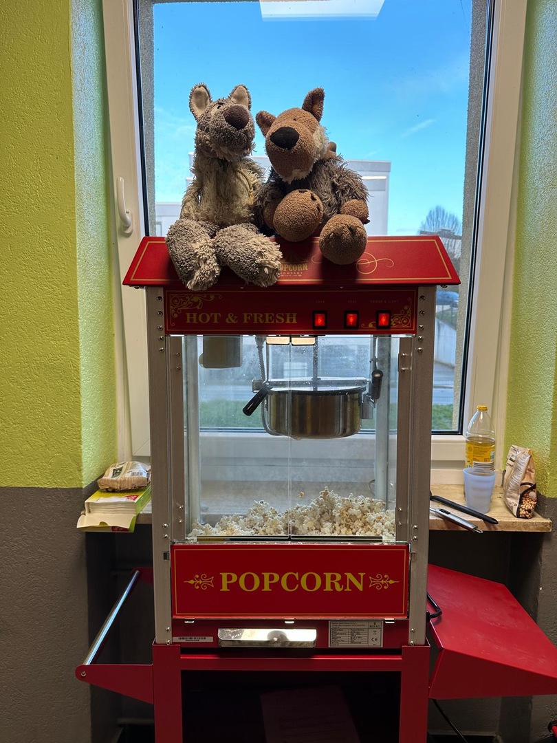 Die Löwenklasse und die Wolfsklasse wollten gemeinsam zu den Schulkinowochen ins Burg Kino gehen. Doch wegen des Streiks der Bogestra ging das leider nicht. Also verwandelten wir kurzerhand unser Klassenzimmer in einen gemütlichen Kinosaal. Für echtes Kino-Feeling durfte leckeres Popcorn natürlich nicht fehlen. So wurde der Kinotag trotz allem zu einem richtig schönen und besonderen Erlebnis für alle. ??